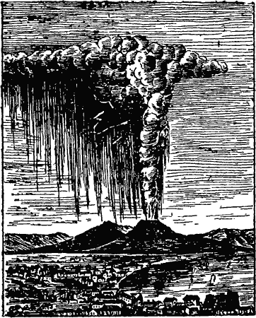 Вот что пишет Плиний в своём письме: «24 августа около часа пополудни над горой показалось облако необычайной величины. Облако поднималось и по форме своей напоминало дерево, именно, сосну, ибо оно равномерно вытянулось очень высоким стволом и затем расширилось в несколько ветвей. Это облако поднималось вверх сильной струёй воздуха, а в том месте, где струя ослабевала, оно медленно расширялось. Облако имело местами белый цвет, местами же грязный или пятнистый, вероятно от примеси земли и пепла» (рис. 2). Дядя Плиния отправился через залив на судах спасать погибающее население окрестностей Везувия. «Чем дальше подвигались суда, тем горячее и сильнее был дождь из пепла; сверху стали падать куски пемзы и чёрные камни, обожжённые и растрескавшиеся от жара; море сильно обмелело и, вследствие извержения горы, доступ к берегу стал очень затруднительным. Между тем из Везувия вырывались широкие языки пламени и поднялся огромный столб огня, блеск и яркость которого только увеличивались вследствие окружающей темноты».