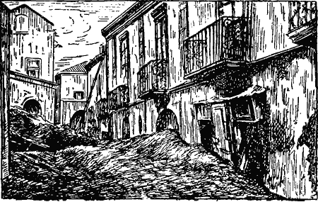 Рис. 4. Улица в городе Оттаяно, расположенном у подножья Везувия, засыпанная пеплом, выброшенным из Везувия в 1906 году.