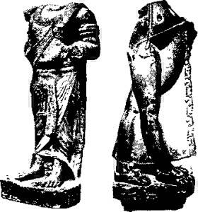 Каменные фигуры. Точно переданы мужская и женская набедренные повязки (г. Матхура, VI в н э)