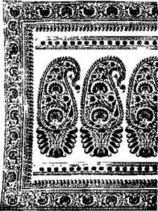 А что уж говорить о знаменитых шерстяных и пуховых кашмирских шалях, тонких, легких, широких и таких теплых, что они согревают человека даже, когда на улице всего 8—10 градусов тепла! Эти шали в отличие от пхулькари вышивают только мужчины. Ни один узор не повторяет другой. Техника вышивки иногда напоминает гладь, но чаще всего это короткие стежки, словно штрихи, нанесенные тонкой кистью или пером. Есть шали, покрытые узором сплошь. Есть — и таких гораздо больше — вышитые только на концах и по краю. Цветовая гамма чрезвычайно богата — вся палитра существующих в мире красок от белого до черного. (И тут, надо сказать, этой вышивкой занимаются мужчины, а не женщины.)