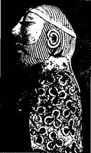 Жители Индии, по-видимому, не знали шитой одежды почти до рубежа н. э. — они драпировали свое тело полностью или — что гораздо чаще — частично самыми разнообразными способами и в самые разнообразные ткани: но что это было, сказать невозможно: то ли набедренные повязки, то ли широкие пояса, то ли какие-то юбочки и шарфики. Многие фигурки, найденные в раскопках в долине Инда, изображают обнаженных людей, на которых нет ничего, кроме пояса, ожерелий и браслетов. Лишь на одной из них четко различим широкий шарф или край плаща, переброшенный через левое плечо и украшенный узором из трилистников. Узор виден очень четко, но, конечно, нельзя определить, вышивка это, набойка или роспись ткани от руки.