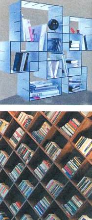 Взгляните на иллюстрации, и вы увидите, что стеллажи можно выполнять не только в виде примитивных прямоугольников, но и делать их ромбическими, в виде полых кубиков и даже выстраивая целые стеллажи-лабиринты.