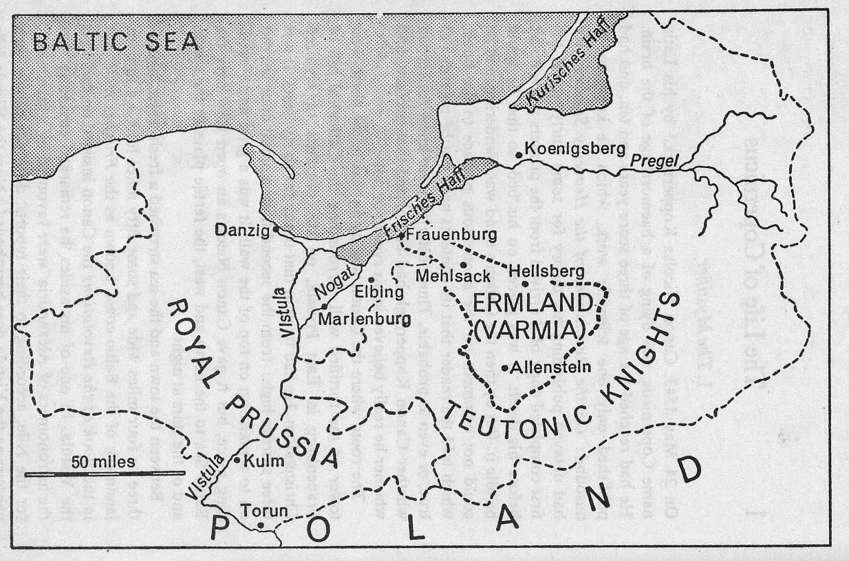 Комната, в которой умирал каноник, располагалась в северо-западной башне крепостной стены, окружавшей Соборный холм города Фромборка[112] в Восточной Пруссии, на самой окраине цивилизованного Христианского Мира. В этой башне он жил уже тридцать лет. Башня была высотой в три этажа: с уровня второго этажа небольшая дверка вела на платформу на стене. Место было мрачное, и никому постороннему здесь быть не разрешалось; зато оно давало канонику Николаю открытый вид на Балтийское море в западную и северную стороны, на плодородную равнину с юга, и на звезды по ночам.