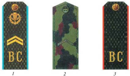 Погоны сержантов и солдат (кроме ВМФ): 1 – старшина; 2 – старший сержант; 3 – сержант (ВДВ)