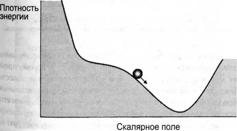 Все, что нужно, — это скалярное поле, энергетическая функция которого имеет функцию приплюснутого холма, как на рисунке 6.4. Вы может спросить: а как скалярное поле в самом начале оказалось на вершине холма? Хороший вопрос. Однако отложим его до главы 17.
