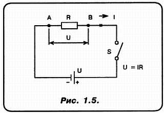 «А»: Светить, он конечно, не светит! А вот относительно того, что он не греет, согласиться с тобой никак нельзя! А ну давай-ка этот рисуночек, то есть я хотел сказать — эту принципиальную электрическую схему нарисуем отдельно (рис. 1.5)!