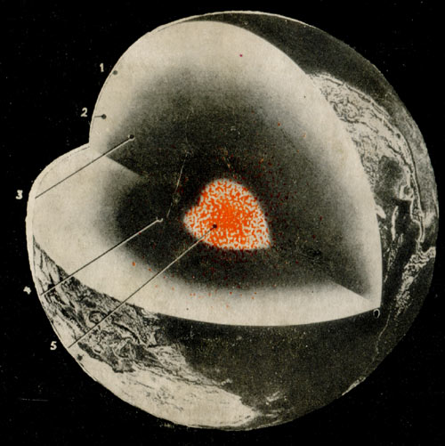 4. ЗЕМНОЕ ЯДРО. Существует предположение, что ядро состоит из расплавленного железа. Гипотеза о жидком состоянии ядра Земли основана на том, что поперечные волны землетрясений через него не проходят.
