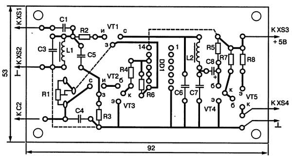 Рис. 19. Печатная плата приемника с синхронным детектором