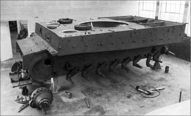 Корпус серийного «Тигра» из коллекции Королевского танкового музея в Бовингтоне (Великобритания) во время реставрации.