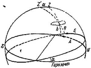 sin (А — А0) = (cos η∙sin ζ)/cos h, (26)