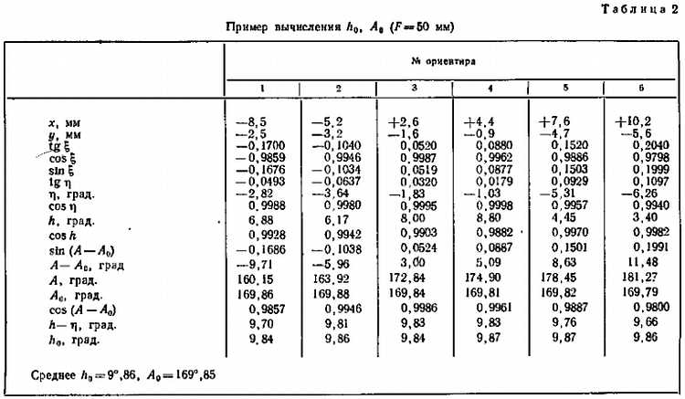 При этом мы полагаем, что координаты центра снимка ζ0— 0, η0 = 0, и учитываем знаки каждой координаты, считая их положительными вверх и вправо от центра. Найдя для каждого ориентира значения ζ, η, вычисляем разности А — А0 по формуле