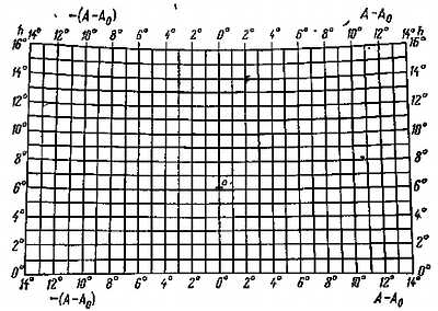 Рис. 41. Палетка для измерения координат серебристых облаков для F' = 250 мм и h0 = 6°07′