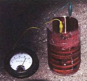 Теперь можно выставить вашу батарею на солнце или просто посветить на нее яркой лампочкой. Микроамперметр должен показать наличие тока в электрической цепи.