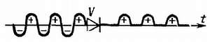 Рис. 44. Диод преобразует переменный ток в пульсирующий