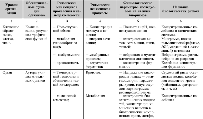 Таблица 2.4. Классификация биологических ритмов в зависимости от того, какие процессы проявления жизнедеятельности и уровня организации этими ритмами отражены (по: Н. И. Моисеева, В. М. Сысуев, 1981)