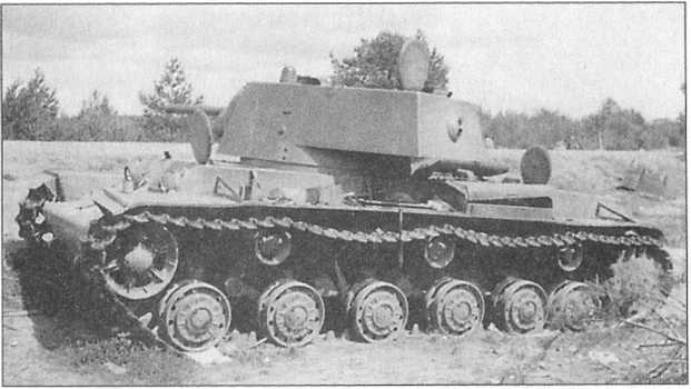 Подбитый КВ-1 выпуска 1940 г. с дополнительной наварной броней с экранами.
