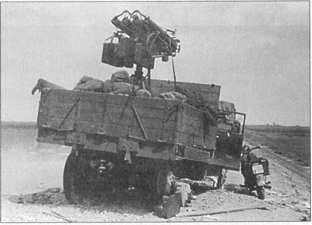 Подбитая счетверённая пулемётная установка «Максим» на автомобиле. Основное средство ПВО в советских мехкорпусах в начале войны.