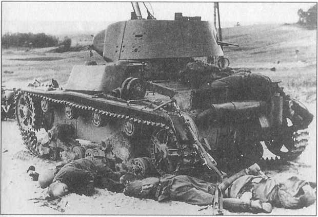 Советский огнемётный танк ОТ-133 (XT-133), повреждённый немецкой авиацией. Западный фронт. Июнь 1941 г.