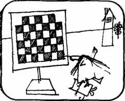 Дочь мистера Брауна начертила план площадки, раскрасила квадраты в шахматном порядке и в течение нескольких минут внимательно разглядывала свой рисунок.