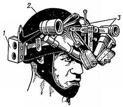 1 — блок питания, 2 — шлем-каска, 3 — перископические телескопы с электронно-оптическим и преобразователями