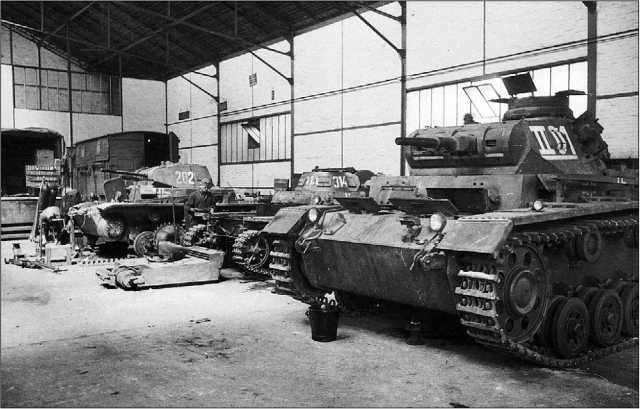 Ремонт танков после Французской кампании. На переднем плане — Pz.III Ausf.E.