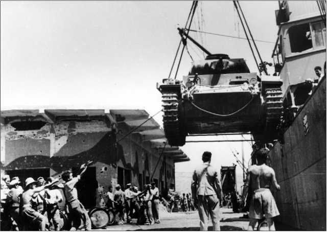 Выгрузка танка Pz.III на острове Крит. 1941 год.