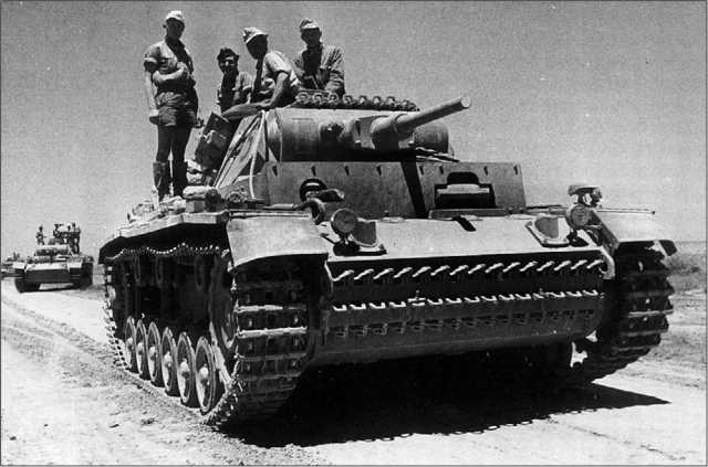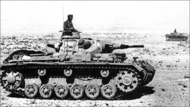 Весной 1941 года «тройкам» пришлось осваивать еще один театр боевых действий — Североафриканский. 11 марта в Триполи начали разгружаться подразделения 5-й легкой дивизии Вермахта, насчитывавшие в своем составе до 80 Pz.III. В основном это были машины модификации G в тропическом исполнении (trop) с усиленными воздушными фильтрами и системой охлаждения. Спустя пару месяцев к ним присоединились боевые машины 15-й танковой дивизии. На момент прибытия Pz.III превосходил любой английский танк в Африке, за исключением «Матильды».