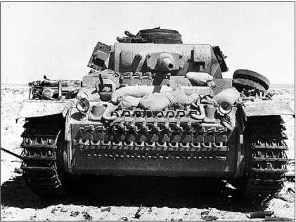 Pz.III Ausf.J в Африке. У машины в лобовой части корпуса установлен дополнительный 20-мм броневой лист.