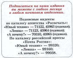 — На досуге вы сможете развлечься головоломками Владимира Красноухова, и, как всегда, «Левша» даст вам несколько полезных советов.