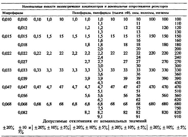 3. НОМИНАЛЫ КОНДЕНСАТОРОВ И РЕЗИСТОРОВ