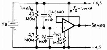 Рис. 14.8. Способ формирования с помощью единственной батареи источника питания с биполярным напряжением.