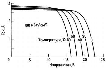 Солнечные элементы работают хорошо при пониженных температурах, поскольку напряжение холостого хода падает при увеличении температуры (рис. 14.14).