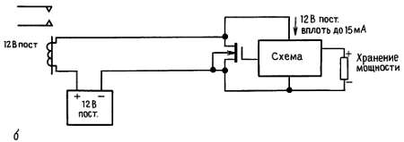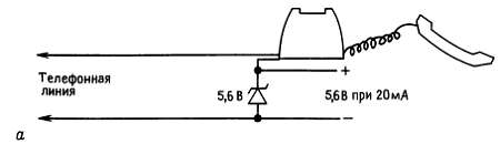 В первых двух структурах ваш источник мощности присутствует только часть времени - мощность пропадает, когда телефонная трубка повешена (режим «опущенной трубки») или когда релейная схема питается от вашего прибора. Если же вам мощность требуется постоянно, необходимо использовать перезаряжаемые аккумуляторы, заряд которых происходит только в течение периода присутствия мощности; для очень маломощных по току нагрузок альтернативой является использование «двухслойного» конденсатора с высоким значением емкости (вплоть до 5 Ф), аналогичный тип конденсатора используется и для сохранения содержимого КМОП-памяти.