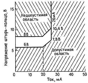 Рис. 14.17. Допустимые условия по нагрузке в телефонной линии в режиме «поднятой» трубки. Незаштрихованная область доступа, спустя 1 с после поднятия трубки.