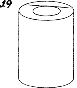 Трехмерный аналог этой задачи звучит так: найти объем отрезка толстостенной цилиндрической трубы, если помимо его длины известна длина самого длинного отрезка, который только умещается на одном из торцов трубы (рис. 19). Этот отрезок соответствует касательной в двумерной задаче, и, зная его длину, мы без труда находим площадь поперечного сечения трубы. Умножив площадь сечения на длину отрезка трубы, найдем его объем.