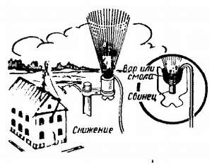 Она состоит из 40–80 прутков проволоки без изоляции толщиной 1,0–1,5 мм и длиной по 40–50 см. Прутки должны быть зачищены с одного конца и туго стянуты концом провода, предназначенного для снижения. Нижнюю часть метелки желательно залить расплавленным свинцом, чтобы обеспечить надежный контакт между отдельными ее прутками. Пучок прутков надо вставить в отверстие большого фарфорового изолятора или толстостенный фарфоровый или стеклянный стакан подходящего диаметра, а затем залить варом или смолой. Свободные концы прутков расправляют наподобие метлы. Изолятор крепят к мачте железным хомутиком или проволокой.