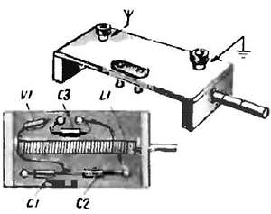 Рис. 30. Настройка приемника самодельным конденсатором переменной емкости