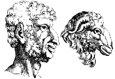 II. Со стороны лица может быть: 1) ненормальная величина (по отношению длины и ширины) его сравнительно с черепом, 2) так наз. прогнатизм, т. е. чрезмерное выступание вперед переднего края челюстей (измеряется величиною так наз. «лицевого угла»), 3) чрезмерное выступание подбородка или очень малое развитие его, 4) несоответствие нижней челюсти с верхней, чрезмерное выстояние верхней, или нижней челюсти, 5) чрезмерное развитие скуловых костей, 6) общий неправильный вид лица (монгольский или негритянский тип у людей кавказской расы, тип ацтеков, тип кретиноидный), 7) асимметрия лица (маленькие асимметрии бывают у многих людей, но у дегенератов, идиотов, эпилептиков и др. асимметрия иногда бывает чрезвычайно велика, 8) затем, одним из значительных признаков дегенерации считается возвышение на нижнем углу нижней челюсти (отросток Альбрехта) — атавистический признак, соответствующий строению нижней челюсти у некоторых пород животных (например, лемуров).