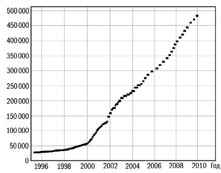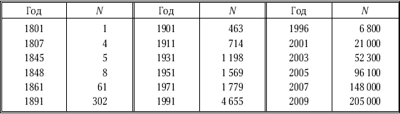 Рис. 4.10. Количество объектов, зарегистрированных в каталоге Центра малых планет. В подавляющем большинстве это астероиды Главного пояса, но есть также троянцы, кентавры, объекты пояса Койпера и кометы.