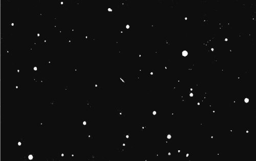 Рис. 4.8. Фотография звездного неба, полученная Максом Вольфом 21 марта 1892 г., на которой он впервые заметил астероид Свея (329 Svea), оставивший короткий прямой след в центре снимка.