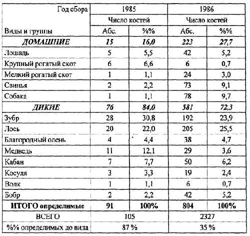 Впрочем и сегодня, когда эти методические вопросы интенсивно разрабатываются, приходится с огорчением констатировать, что во многих палеоэкономических публикациях, в особенности сделанных археологами, анализ остеологических материалов по-прежнему проводится по «числу особей». Такой подход все еще сохраняется в отечественной археологии, несомненно, вследствие огромной массы конкретных данных, опубликованных В. И. Цалкиным. До сих пор они являются зачастую единственным источником археозоологических сведений по отдельным регионам и культурным общностям и, естественно, привлекаются для изучения хозяйственной деятельности. Археологи же, не задаваясь методическими вопросами, слепо следуют схеме В. И. Цалкина. Хотя в своих работах он всегда публиковал исходные данные по количеству костных остатков каждого вида, которые как раз и должны использоваться.