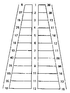 Числовая пирамида состоит из двух равномерно расходящихся сверху вниз рядов случайных двузначных чисел и ряда последовательных чисел (от 1 до 12), расположенных посередине. Осевые центральные числа ориентируют вас во время выполнения упражнения. Тренировка заключается в том, что. фиксируя взгляд на числах центральной от взора линии, необходимо распознавать одновременно и числа, расположенные в расходящемся ряду.