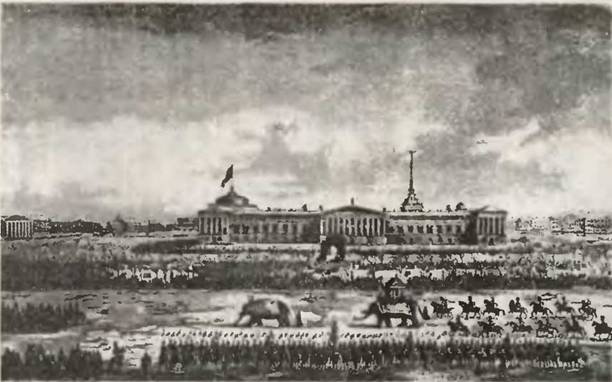 Вид Адмиралтейства и Дворцовой площоди во время шествия слонов, присланных персидским шахом
