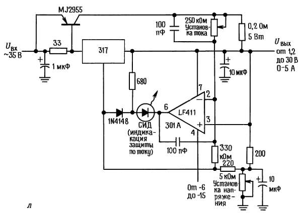 Рис. 6.66. ж — стабилизатор с ограничением тока;