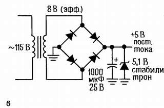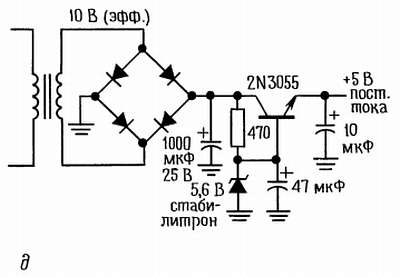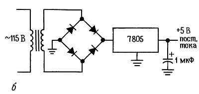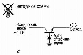 Рис. 6.66. а — простой источник стабилизированного напряжения;