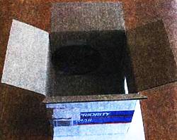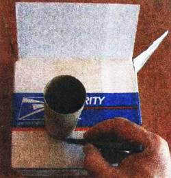 Открыв ящик, разместите в нем диск поблизости к щели. Прикрепите его скотчем к задней стенке коробки так, чтобы его рабочая сторона была обращена кверху (рис. 7).