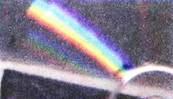 Чтобы убедиться, что угол, под которым в коробку вставлена смотровая труба, подобран правильно, направьте входную щель на источник света. Посмотрите через бумажную трубку и подрегулируйте угол ее наклона, чтобы увидеть полный спектр — от красного до фиолетового (рис. 10).