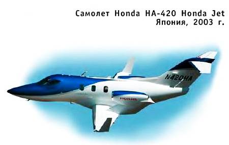 Фирма Honda, известная своими мотоциклами и автомобилями, 8 декабре 2003 г. представила сверхлегкий реактивный самолет бизнес-класса. Для Honda Jet был разработан специальный турбореактивный двигатель, особый профиль крыла. Фюзеляж выполнен из углекомпозитных материалов с алюминиевыми усиливающими элементами, носовая часть сглажена.