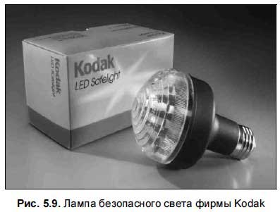 В отличие от фотопленки, фотобумага может обрабатываться при свете специального фонаря, фонаря со светофильтром. Как правило, это красный или желто-зеленый светофильтр (рис. 5.8).