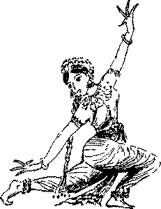 Эти девочки (в больших храмах их насчитывалось до нескольких сотен) становились «девадаси» — «рабынями бога» Танцы их, из которых наиболее популярен «бхарата-натьям». состояли из комбинаций быстро сменяющихся движений и поз. дополняемых условной мимикой Язык всех этих поз и жестов известен под названием «абхинайя» Целые поэмы, гимны и молитвы можно создавать из определенных сочетаний движений пальцев, рук, головы, глаз, бровей, поворотов тела, прыжков, притоптываний и проходов.